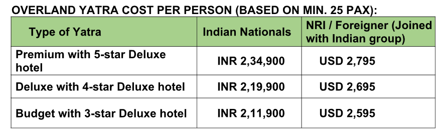  Minimum Booking Amount: Indian Nationals: INR 25,000 per person & NRI / Foreign Nationals:
